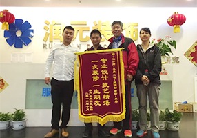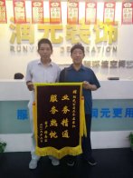 2016.7.16日上午,AG真人客户携家人来到AG真人总公司,将一面绣有“为客户着想一丝不苟、让客户满意精益求精”的大红色锦旗送到AG真人的领导手中,衷心感谢润