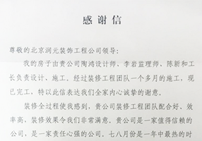 感谢信 尊敬的北京AG真人工程公司领导: 我的房子由贵公司陶虹设计师、李岩监理师、陈新和工长负责设计、施工。经过装修工程团队一个多月的施工,现已完工,特