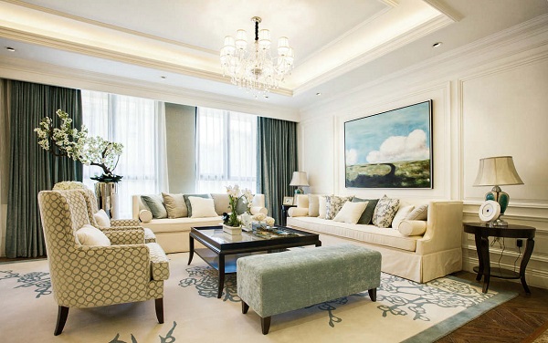 水晶吊灯、温馨的壁纸、古朴的地毯、华美的窗帘等在欧式风格的居室中运用得很多,选用时要与整体的色彩装饰协调,家具上多以欧式风格的雕花、螺纹为主。