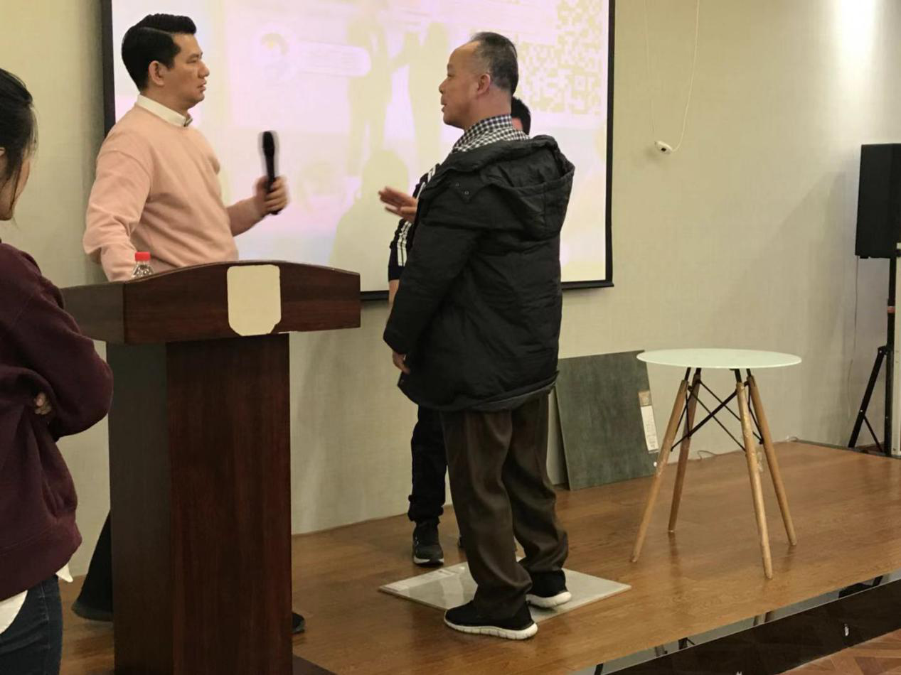 红包放松过后,欧神诺瓷砖专家王可也针对讲解“如何辨别和选择适合的优质瓷砖”,现场为大家展示了防滑砖、防水砖如何辨别,同时也邀请现场嘉宾上场参与辨别实验。