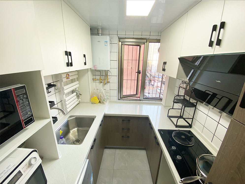 4平米的厨房,平时洗菜刷碗,炒菜做饭也有多处不方便,并且储物空间也很少,现在需要重新科学规划厨房操作空间以及增加储物。