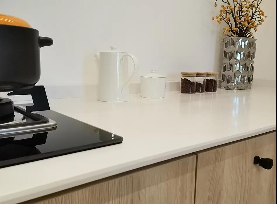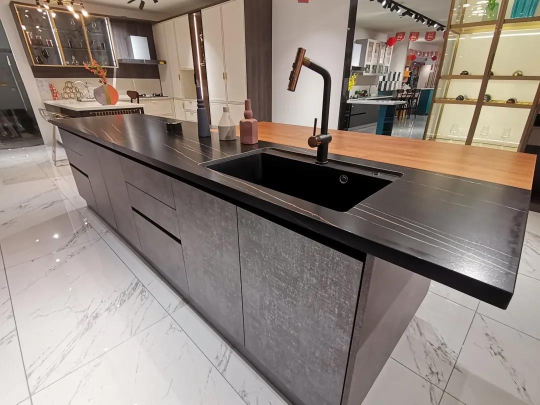 石材与木材的结合,给了餐厨空间更多选择;双面可使用的橱柜,储物划分更细致、使用更方便。