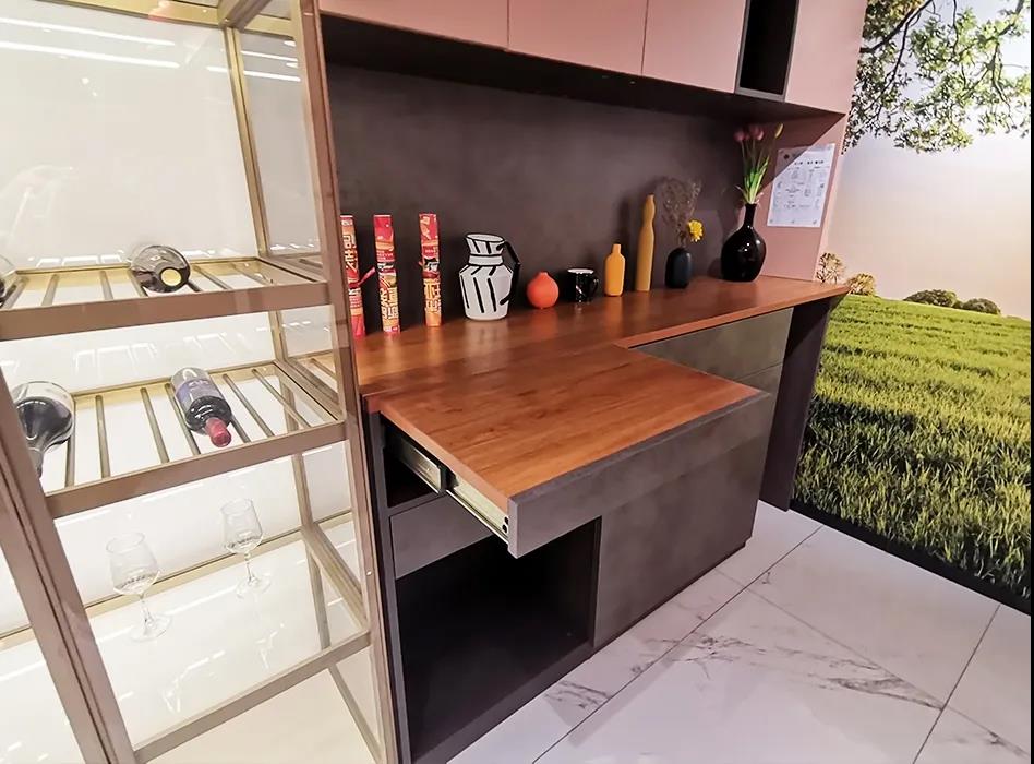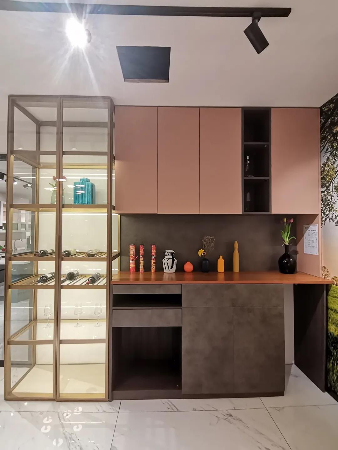 整体上这是一个酒柜结合餐边柜的形式,隐藏式的吧台使用更加灵活。