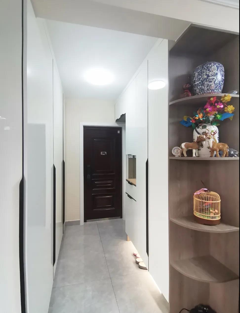 门厅面积不到4平米,一张桌子,一个简易鞋柜充当临时储物,不仅空间上凌乱,整体利用率也很低。