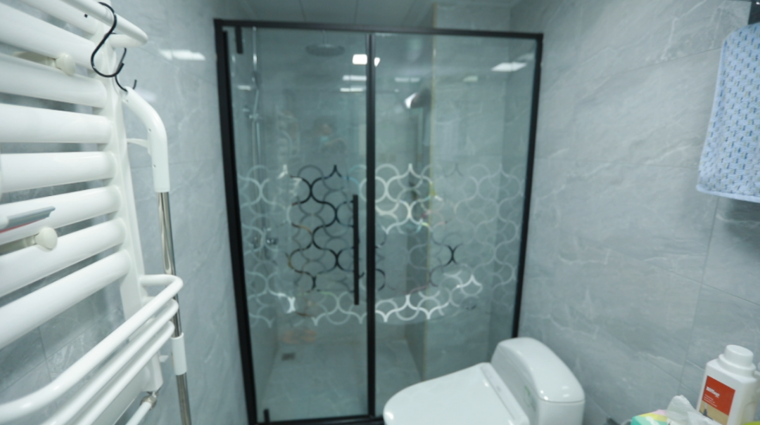 金女士原来家里卫生间,洗澡的时候水溅的哪哪都是,打扫起来也很麻烦,现在的新房卫生间面积4.5平米,金女士希望能够干湿分区。