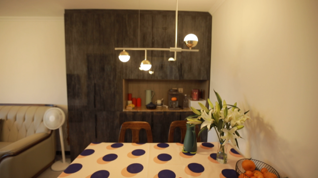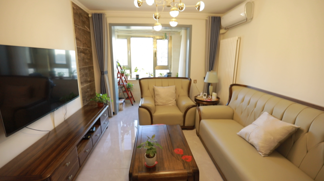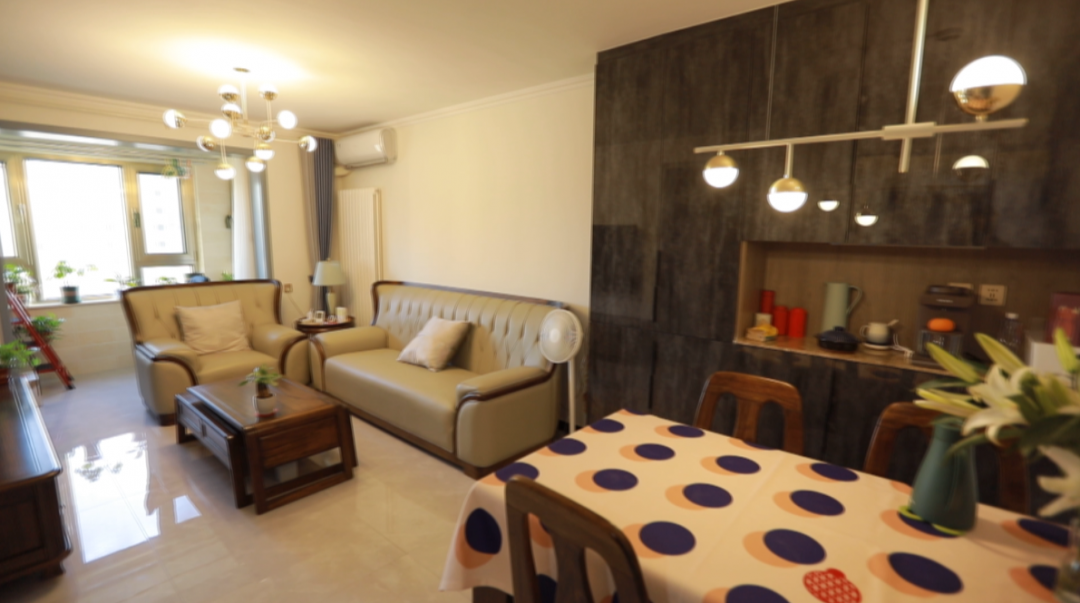 利用AG真人自有的定制家具,在这23平米的空间里,打造了一组餐边展示柜,方便餐区储物的同时,电器使用也更加便捷,一组四人位餐桌满足了金女士想要的用餐空间。客厅里,沙发、茶几、电视柜样样齐全。拆除阳台不承重的推拉门,让整个客厅空间更加开阔,采光更加充足。还为金女士打造了休闲空间,平时晒晒太阳、养养花草很是惬意。