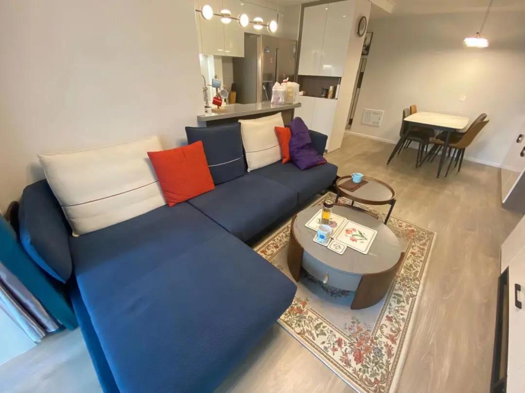 设计师拆除了厨房和客厅的这堵轻体隔断墙,将原本封闭的厨房改成了开放式的,再重新规划。
