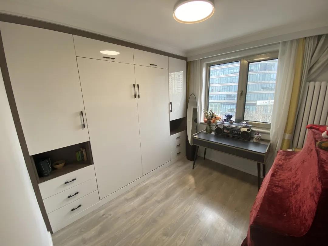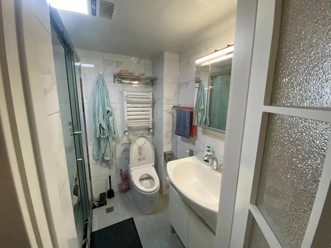 借用了一部分卧室的空间,卫生间由原来的3平米,扩大至将近4平米,有了独立的淋浴房,彻底实现了彻底实现了干湿分区。