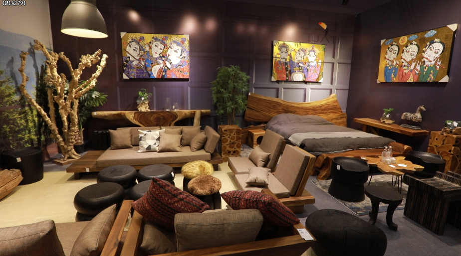 这组展品最大的特点就是自然、原始,主要是用自然的原木来做一些现代的空间,从印尼进口而来的自然大板与金属或其他材料相结合,更为时尚的体现在现代的餐厅、客厅空间。