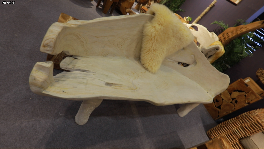 这款椅子是整木雕刻而成,是一整个风化的柚木雕刻而成的休闲长椅。