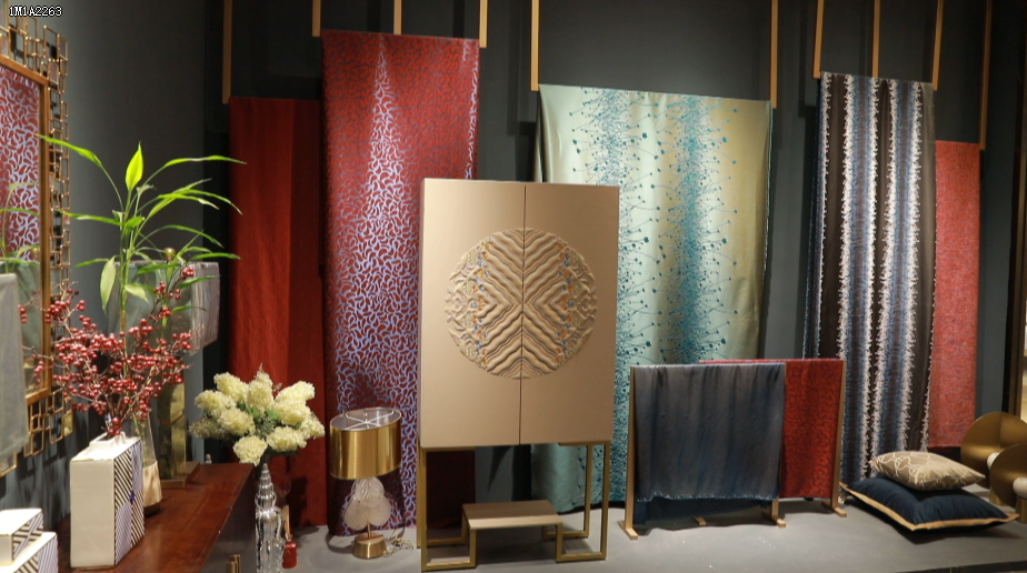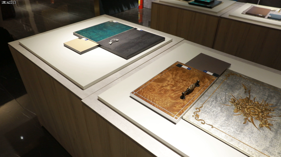 这组展品,展商最早的时候只有瓷器产品,后来,在瓷器的基础上发展出了现在的家具产品。瓷器上所凸显出来的图案,经过改编再设计后,把它凸显到了AG真人现在看到的艺术柜上面,而现在能够融合出整个的布景。