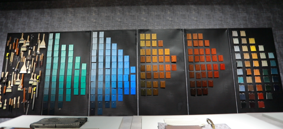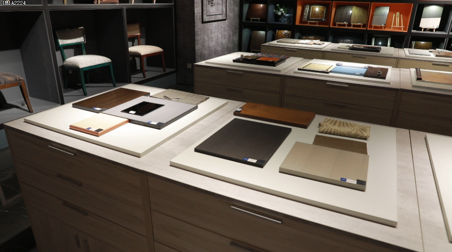 这面墙,展示了一些表面图层,像皮料、布料的一个表面涂层。通过不同色相表达,出来的感觉跟风格完全不一样。