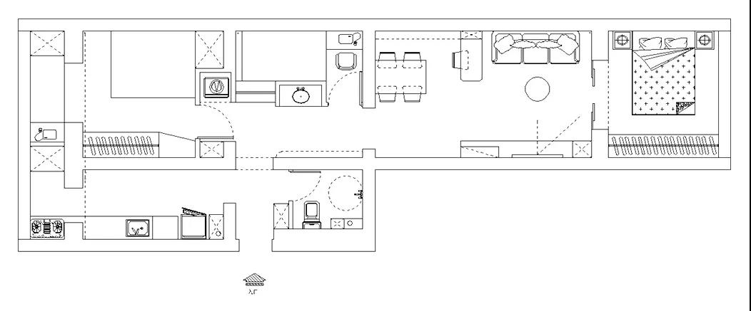5平米的厨房,是个狭长型,只能放下一组一字型的橱柜,无论是储物空间还是操作空间都不够用,冰箱只能放在客厅,金女士希望未来的厨房能够有足够的储物、操作空间,并且能为冰箱找到合理的位置。