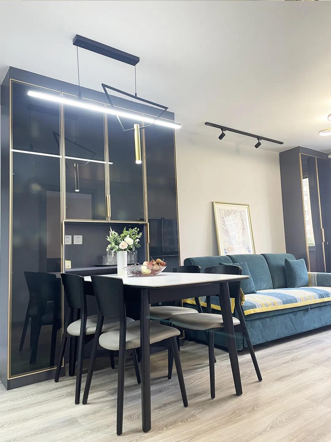 谢先生家原本没有餐厅空间,用餐也是摆一张简易的桌子,本次装修,谢先生希望能够合理规划客厅,增加用餐空间。