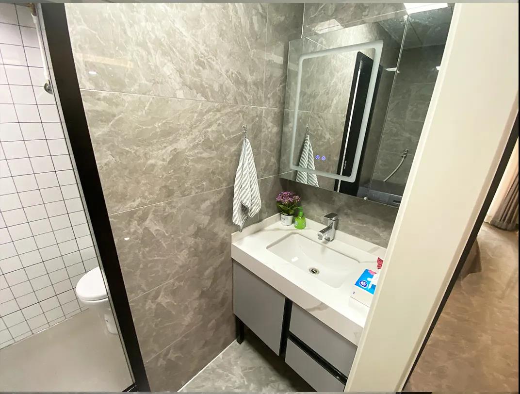 设计师重新规划了卫生间,里面为湿区,规划了淋浴和马桶,外面是干区,摆放了洗衣机和洗手盆,分区使用更为方便。