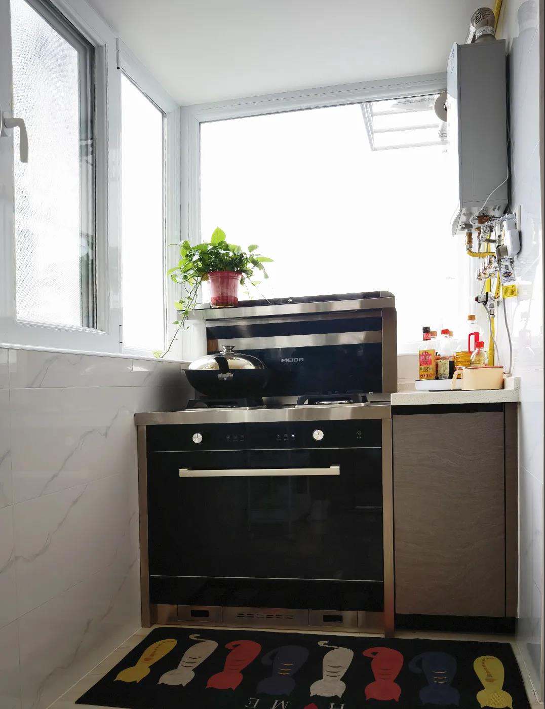 而这个阳台,则作为中厨区,采用集成灶,这样通风、采光都更好。