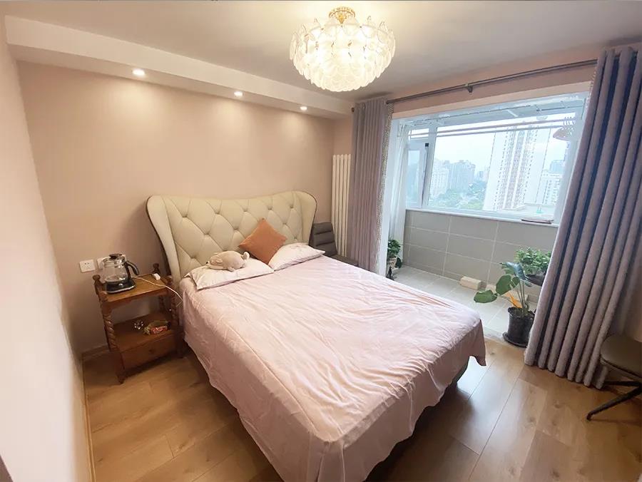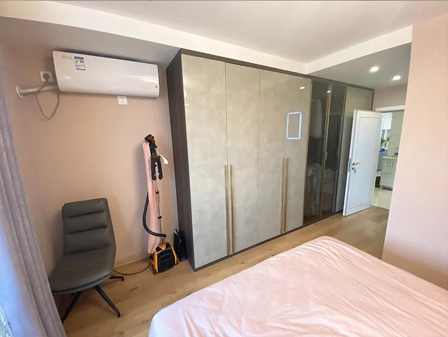 主卧室门后的这面墙向外推60厘米,这样门后可以打造一组通顶的定制储物柜,来满足张女士夫妻俩需要的储物空间。