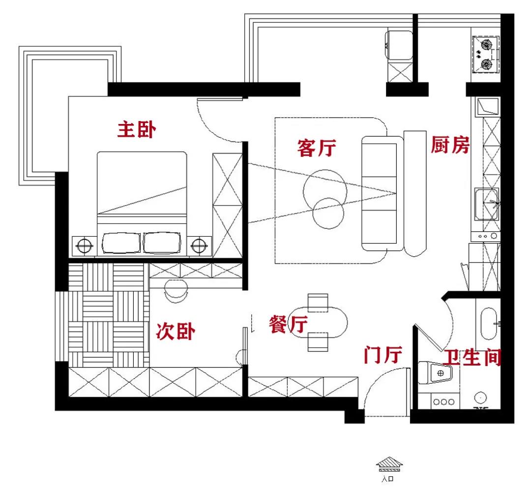 小户型也能拥有大空间,我对门的业主李先生夫妇家的这套老房,使用面积为57平米,原始格局为两室一厅一厨一卫,这套房子未来式作为李先生夫妇的婚房使用,这次装修还要考虑到未来有小宝宝的情况。
