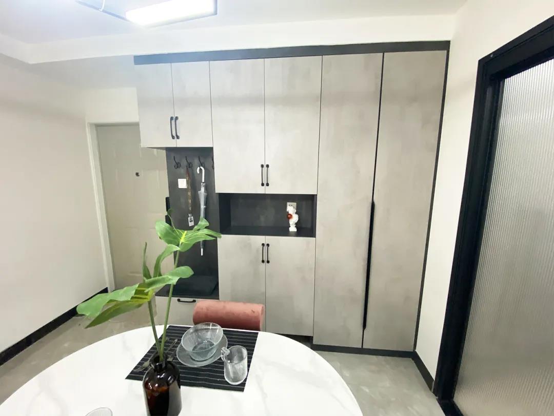 李先生家门厅,进门右手边就是一个简单的衣帽柜,并不能满足一家三口平时的储物需求,并且衣帽柜对着门,也影响了门厅采光。李先生希望能够有一个储物功能强大,美观实用的门厅。