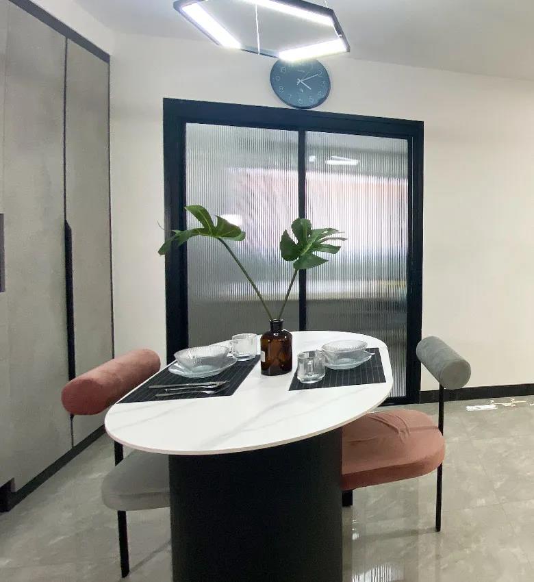 用长虹玻璃的推拉门作为隔断,次卧的采光也能借到餐厅,解决了原来餐厅采光差的难题。