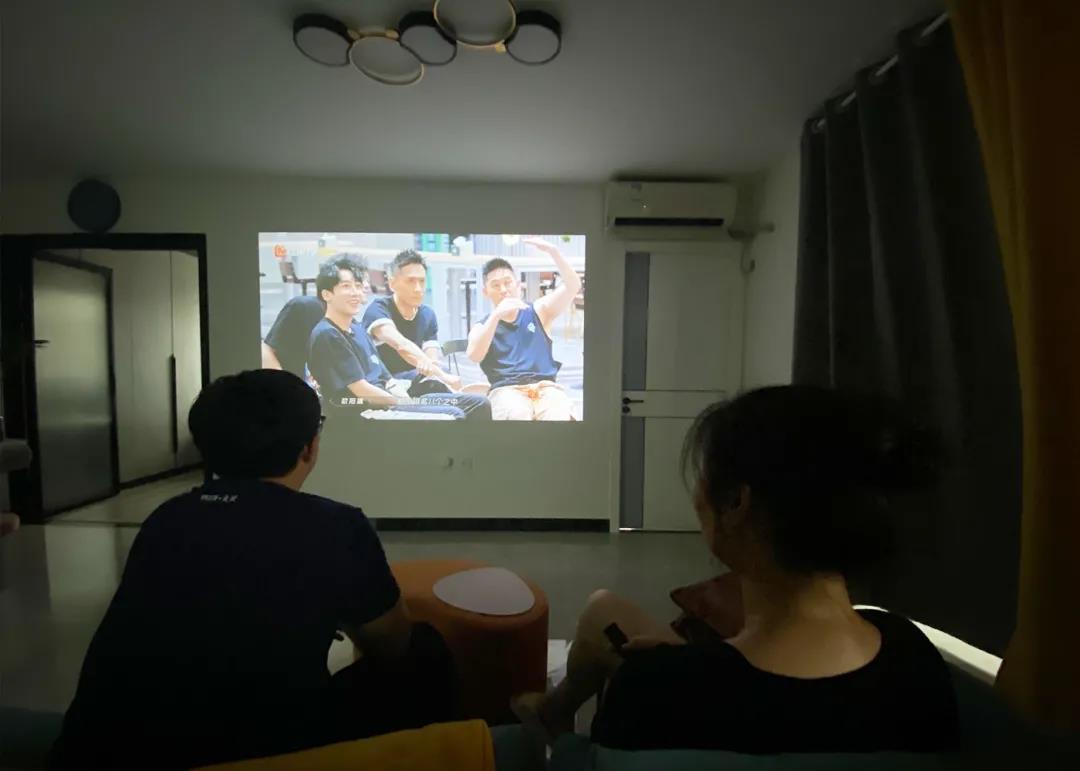 安装上投影,短期是小两口的观影空间、未来还可以是孩子的活动空间。