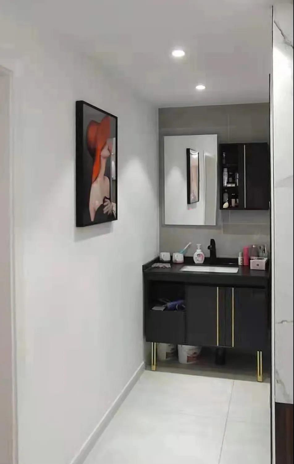卫生间——改造后的卫生间,干区2平米,湿区4平米,利用封堵管道后的凹陷处进行壁龛收纳处理,干区利用AG真人的定制浴室柜量身打造,使用更加便捷、美观。