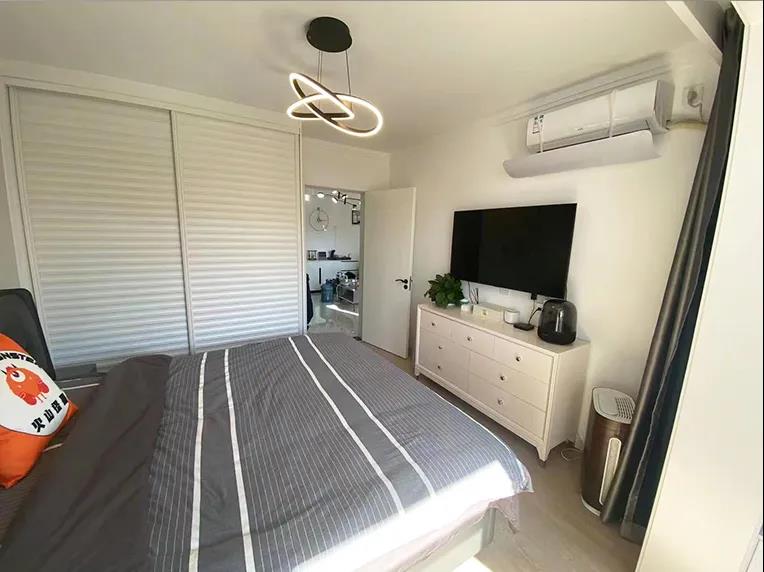 主卧面积11平米,还有一个4平米的阳台,只摆放了一张双人床和一组衣柜,阳台则用来堆放杂物,焦女士希望未来主卧满足居住和储物功能外,还能打造一个休闲空间。