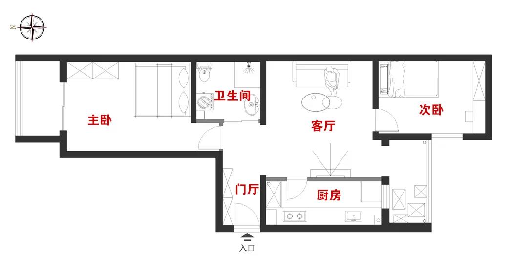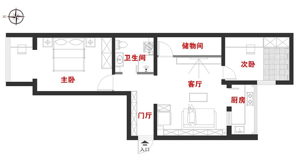 改善门厅采光及空间压抑问题。重新布局卫生间,使方便好用。合理利用客厅空间,改善采光及通风问题。充分利用厨房空间,改善采光。重新规划阳台,充分利用空间。改善卧室布局。