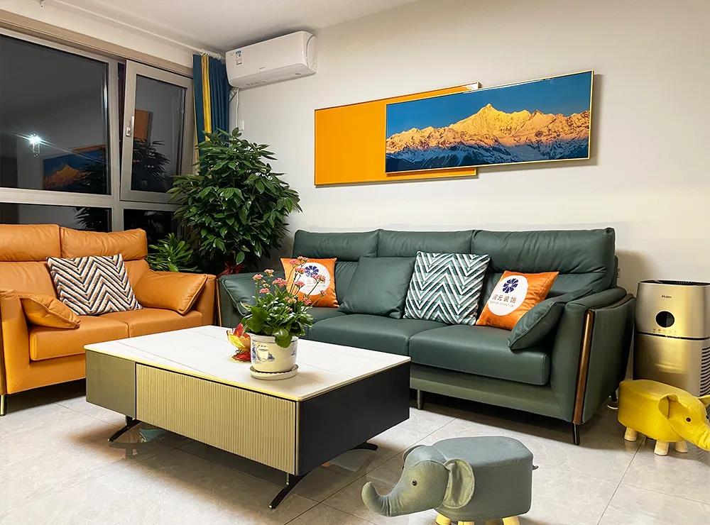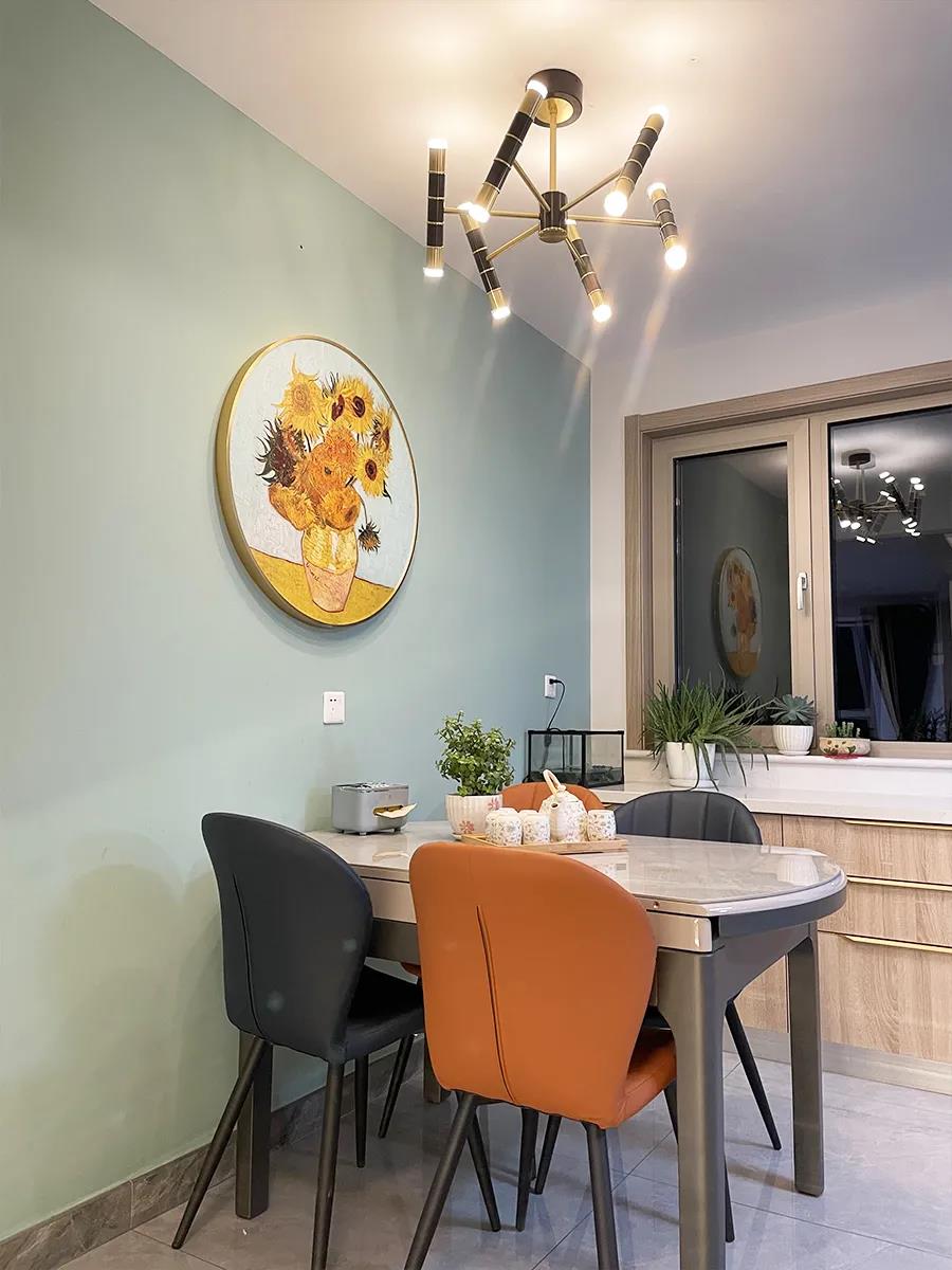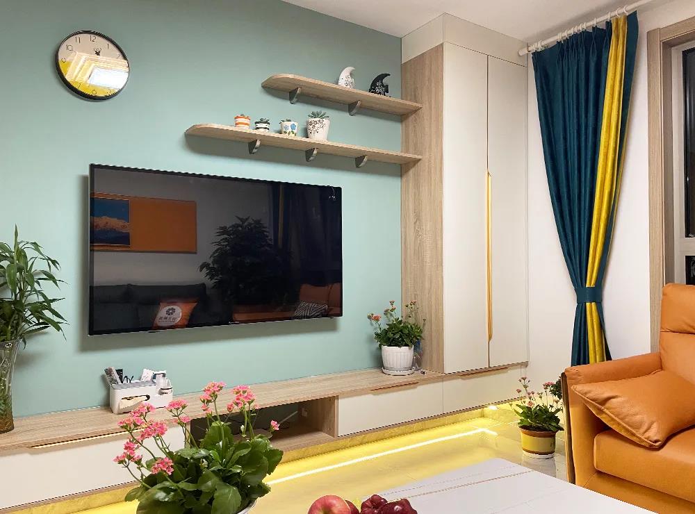 客厅空间22平米,为了增加客厅储物,设计师利用AG真人定制家具,将电视柜与储物柜结合起来,还贴心的规划了展示架,展示储物都是可以的,同时也让这个空间层次更丰富。