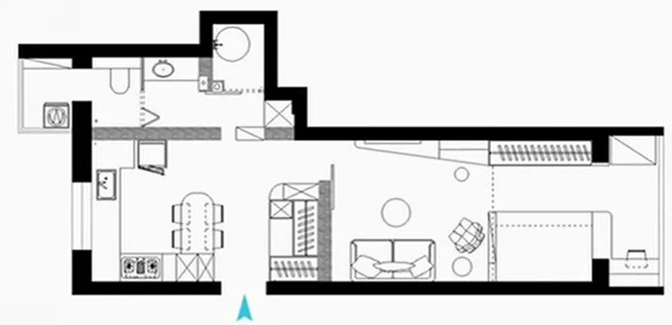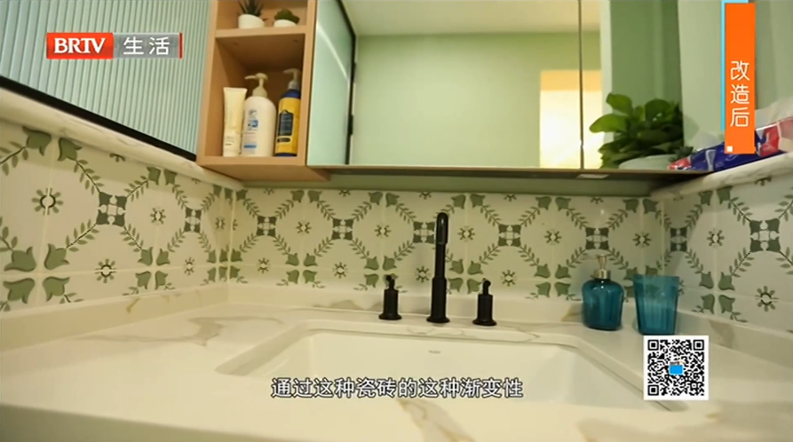 设计师贾向楠对整体格局重新规划,将卫生间缩小至2平米,但里面该有的功能也全都有,而且原来的暗卫生还用玻璃砖的形式变成了明卫,改造后的卫生间可以称得上麻雀虽小五脏俱全。