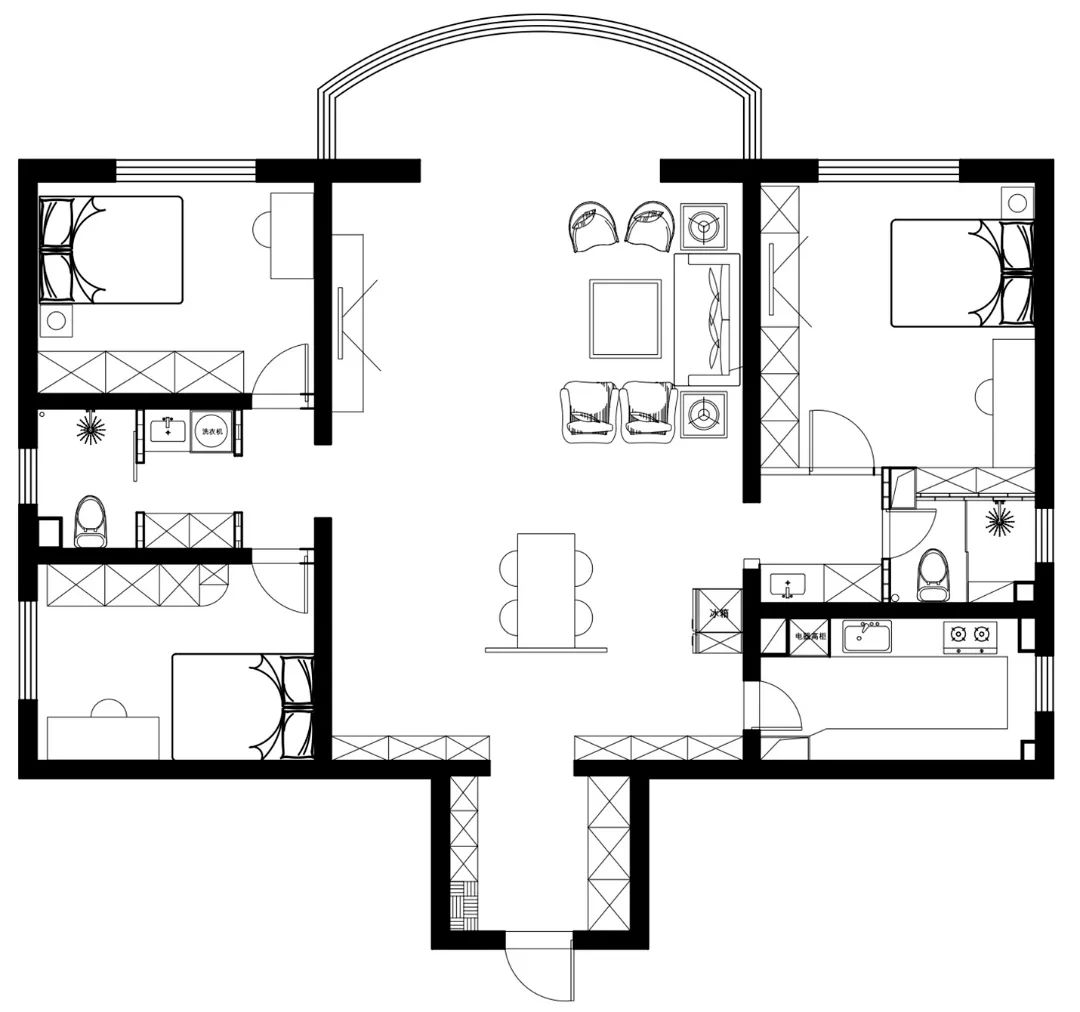 韩女士家的这套房子是一套建筑面积170平米,三室一厅一厨两卫格局的老房,平时主要三口人居住,这次装修韩女士希望能够合理规划一下门厅,满足大容量储物;重新规划客餐厅,改善客厅采光;重新规划厨房,满足日常操作需求;卫生间实现干湿分离。