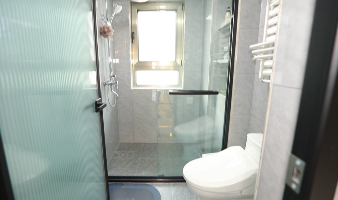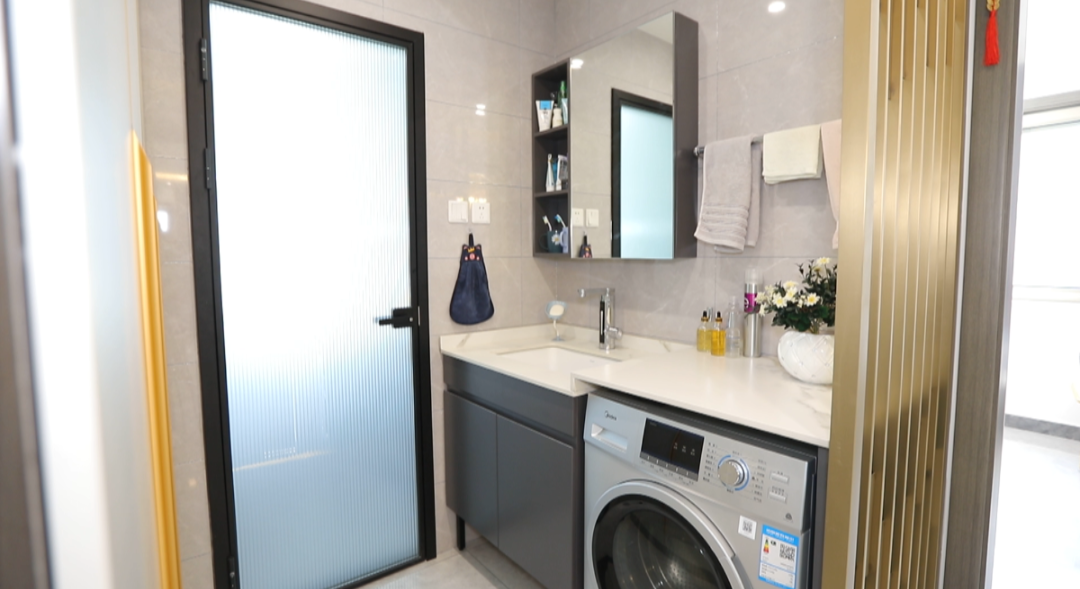 卫生间——重新规划的两个卫生间,做了很明确的区域划分,一个给孩子用,一个韩女士夫妻俩用,而且都彻底实现了干湿分区,提高使用的舒适度,次卫的干区还进行了通顶收纳储物的设计,满足了一家人的需求。