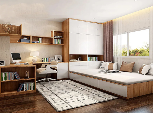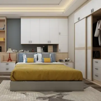 对于卧室空间,也要根据具体情况来做定制家具。一般分为三类,一类是基础版的,卧室空间就床,衣柜,床头柜这些基础家具。第二类是除了满足基本的卧室功能还捎带些休闲娱乐功能。第三类就是多功能形式的卧室了,兼具卧室,书房,休闲室,娱乐室等多重功能。