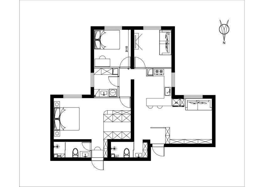 装修需求:合理规划门厅,增加储物,提高私密性 。重新规划客厅,改善采光。曾加厨房储物及操作空间。打造多功能空间,满足休闲,办公需求。规划独立衣帽间。卫生间实现干湿分区。