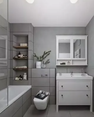 解决卫生间储物问题可以,量身定制浴室柜,或利用壁龛,增加储物。