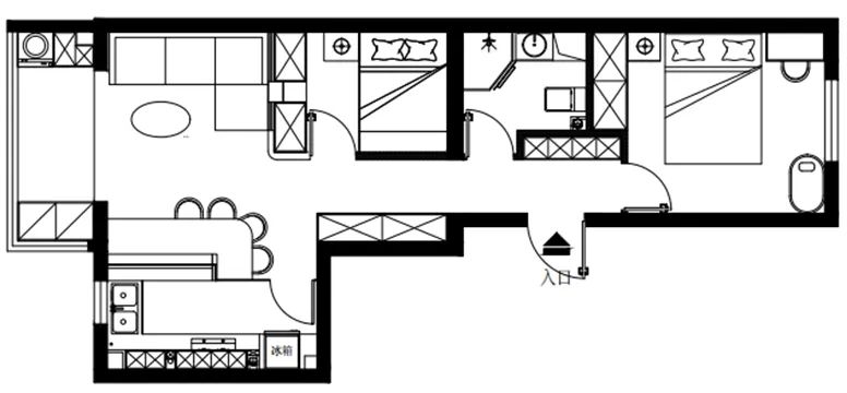 这三间卧室都是可移动的轻体墙,设计师通过墙体的挪移以及改变门的开启位置,解决了卧室存在的问题。