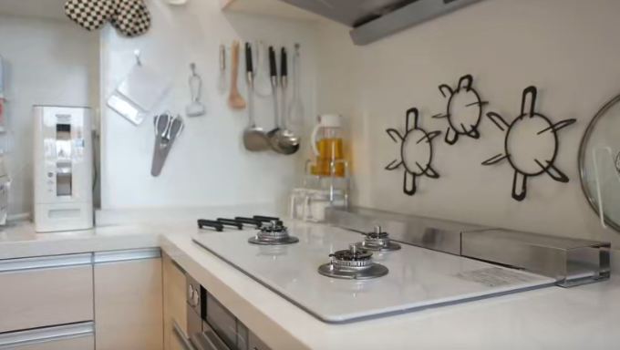 另一个原则是上下的高度,65厘米至1米85是人体拿取常用空间,可分为上中下三个部分,上区放置不常拿取的物品,中区适合放置常用餐具,墙面上可用洞洞板、珐琅板等来充分利用空间。下区可放置锅具、洗涤用品等。