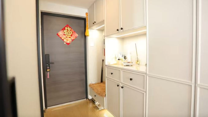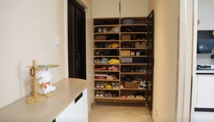 门厅玄关的主要需求是换鞋换衣,以及鞋类物品的储藏,这块的收纳关键在分区分类,首先是分层放置,其次是按鞋子高矮不同分类摆放,这样拿取方便,也能增加收纳量。