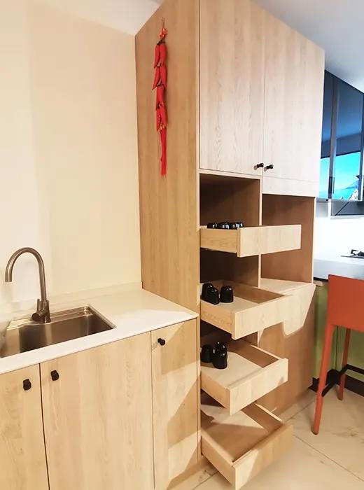 橱柜采用抽屉形式储物,也更方便拿取物品。