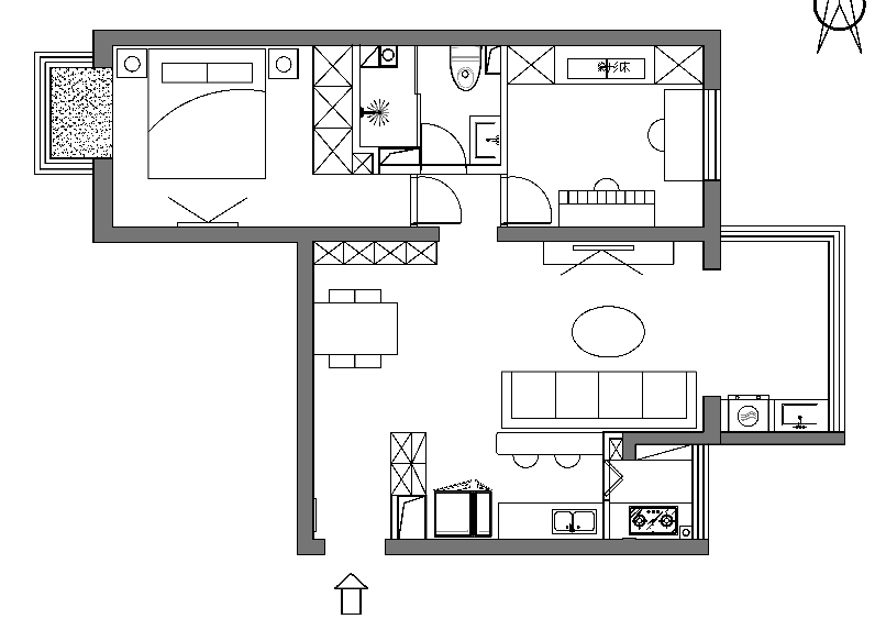 厨房有6平米,面积并不小,可因为是个狭长型的格局,只能放下一组一字形橱柜。操作空间、储物空间都不够。另外原来的冰箱放在客厅的阳台上,操作动线过长,拿取东西十分不便。任先生希望改造后的厨房能够储物强大,动线合理,操作便捷。