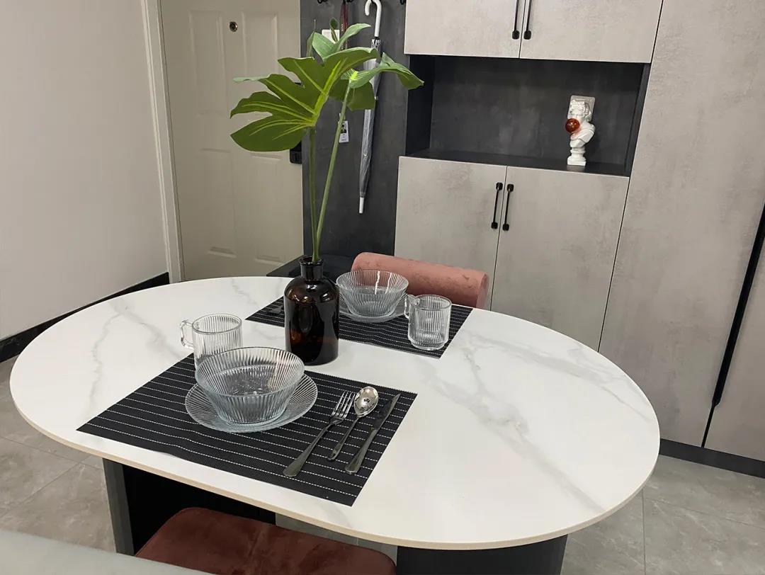 为了让餐区使用更合理、采光更好,设计师拆掉了原有次卧和餐区的隔断墙,餐区重新规划在了这里,并且为餐区规划了回游式动线,四周都可以通行,还可以灵活的增加座椅,盘活了整个空间,让整体空间显得更加开阔。
