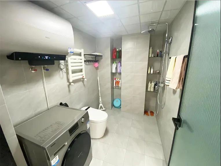 卫生间——改造后的卫生间,干区2平米,湿区4平米,利用封堵管道后的凹陷处进行壁龛收纳处理,干区利用AG真人的定制浴室柜量身打造,使用更加便捷、美观。