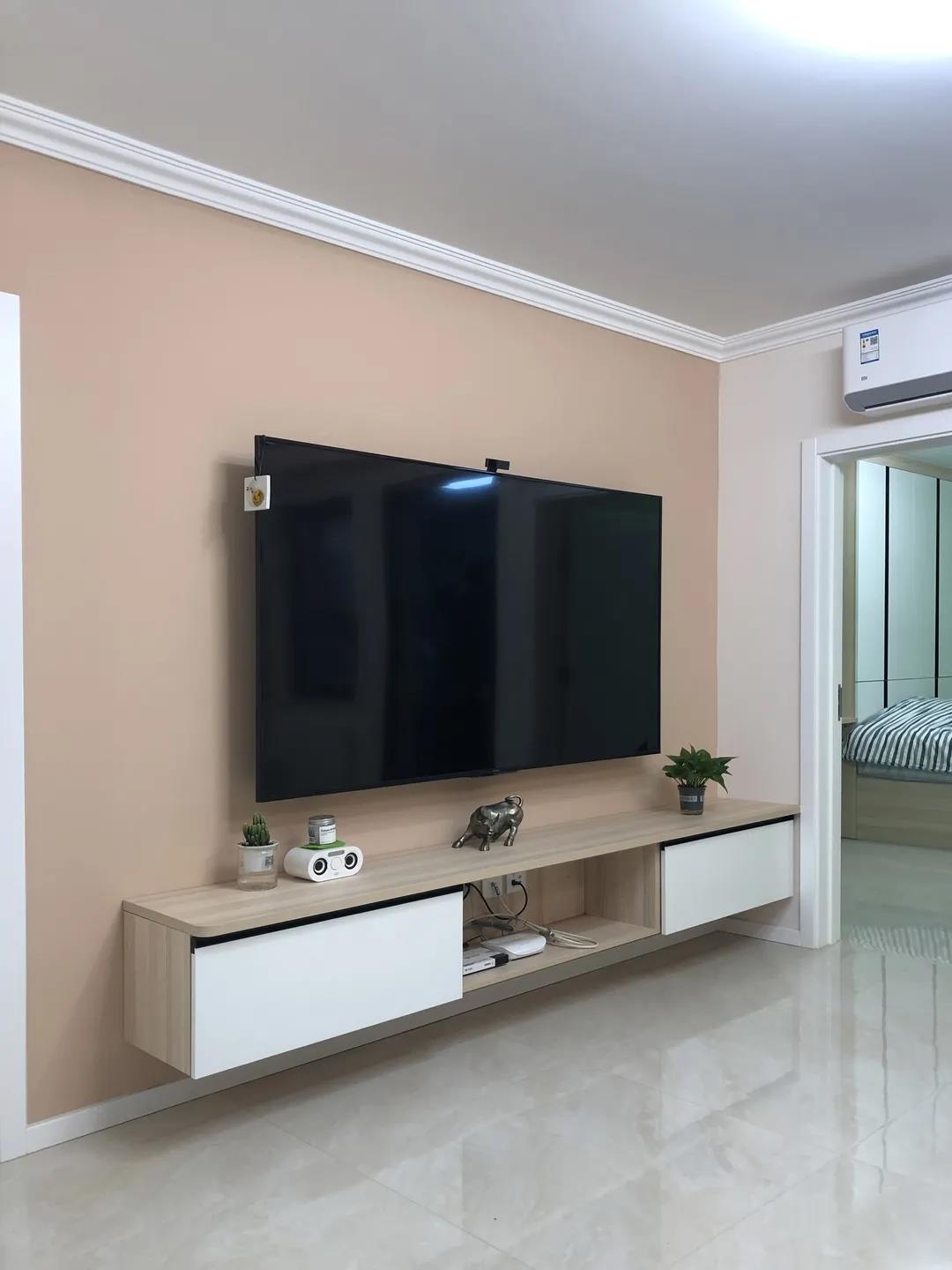 为了解决客厅采光差,空间浪费的问题,设计师拆除了客厅与厨房共用的一面墙体,调转了客厅与厨房的位置,改善了客厅采光。将厨房移走,改为了一个4平米的储物间,并且利用定制家具将沙发背景墙设计为一整面的通顶定制储物柜,双开门冰箱内嵌其中,充分利用了客厅空间。