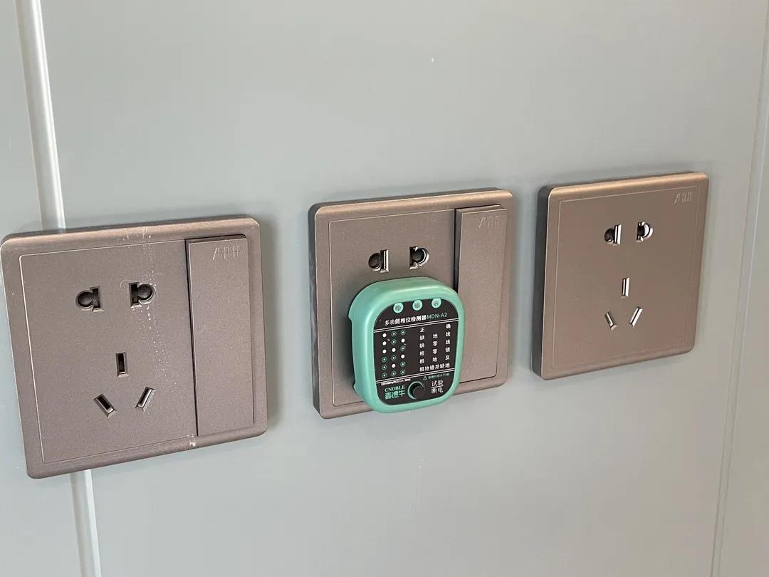 排查每个插座开关是否有电;检查开关高度是否整齐。