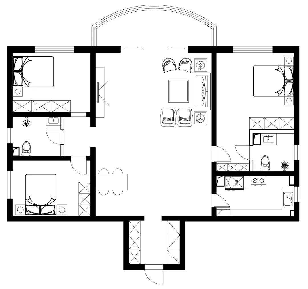 韩女士家的这套房子是一套建筑面积170平米,三室一厅一厨两卫格局的老房,平时主要三口人居住,这次装修韩女士希望能够合理规划一下门厅,满足大容量储物;重新规划客餐厅,改善客厅采光;重新规划厨房,满足日常操作需求;卫生间实现干湿分离。