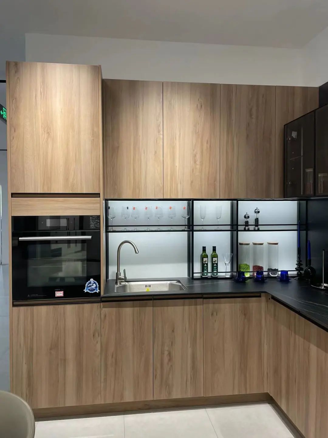 如果您家厨房是狭长型,且没有连接阳台的户型,L形橱柜再合适不过了。这套橱柜,除了展示套餐里配套的柜体、门板、五金外,还为厨房提供了更多的个性化参考。