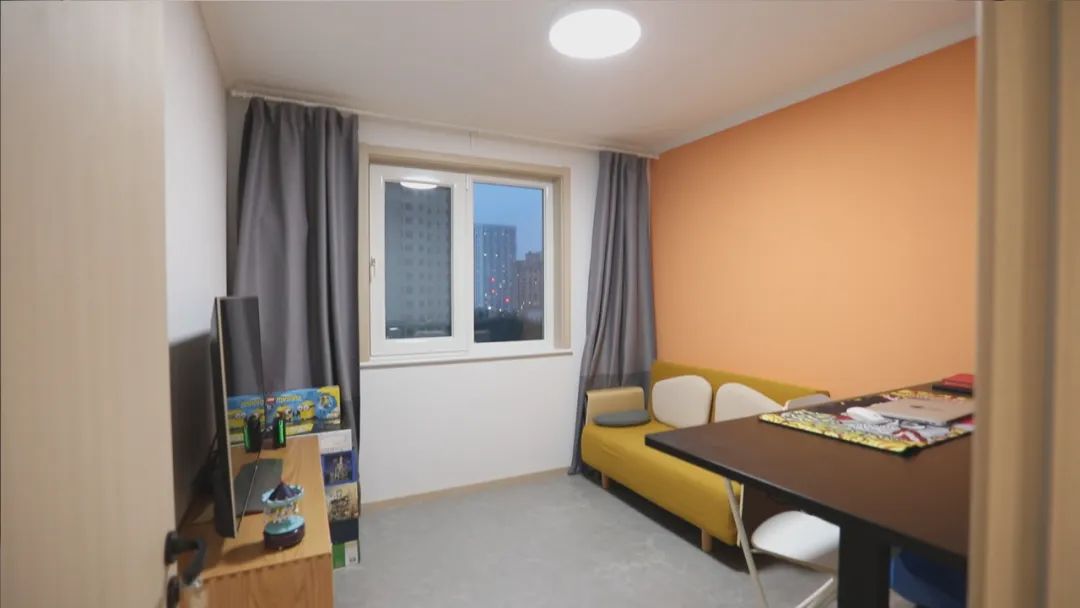 这间多功能房内,沙发床、办公桌、电视的规划布局,可满足谢先生的办公、看球赛、家人偶尔留宿的多重需求。