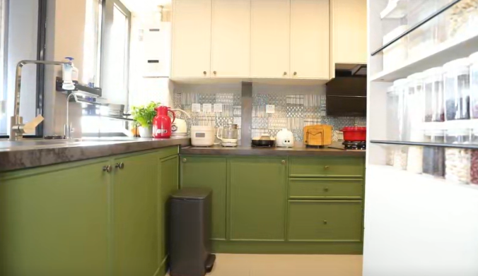 厨房收纳,是在洗切炒动线上来进行规划的,围绕洗菜、切菜、炒菜的不同区域常用物品来放置,这样拿取比较方便。